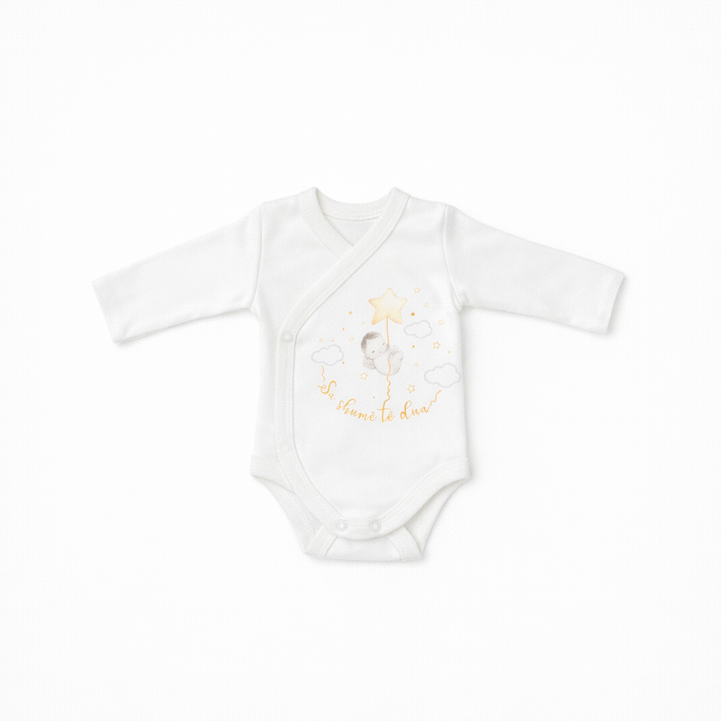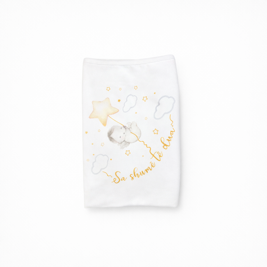 Featuring the sweet inscription “Sa shumë të dua” (I love you so much), this unique set conveys love and warmth in every detail. Its practical design and natural materials ensure your baby stays comfortable all day long, while the premium quality guarantees long-lasting durability.
