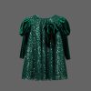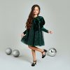 Bëjeni vogëlushen tuaj të shkëlqejë me këtë fustan të mrekullueshëm kadife në ngjyrë jeshile, i zbukuruar me shkëlqim vezullues, i krijuar për ta bërë çdo rast të paharrueshëm. Me mangë të fryra kadifeje, një fjongo madhështore dhe një prerje të hijshme A-line, ky fustan është zgjedhja ideale për dasma, ditëlindje, festa dhe evente festive. Shtresa e brendshme e butë ofron rehati të përkryer, ndërsa shkëlqimi i këtij fustani reflekton dritën për një efekt magjik.
