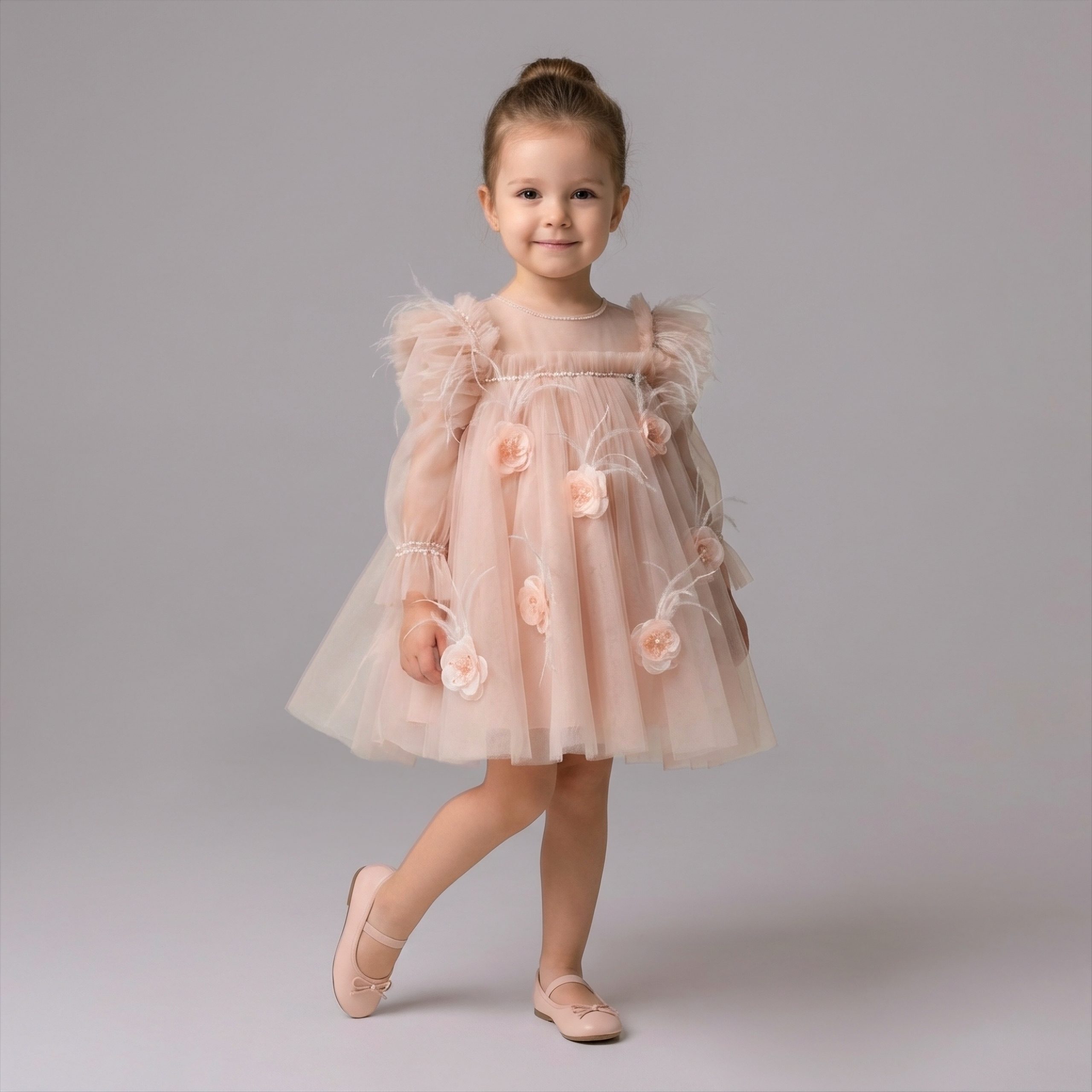 The Mimi Ariel dress is a vision of ethereal beauty, designed to make little girls feel like they’ve stepped out of a fairytale. With delicate sheer sleeves, soft layers of airy tulle, and exquisite hand-sewn floral appliqués, this dress captures the essence of elegance and whimsy. Crafted from luxurious fabrics, Mimi Ariel offers a light and graceful feel, perfect for creating magical memories. Every detail is meticulously handcrafted, ensuring a breathtaking finish that makes this dress truly one of a kind.