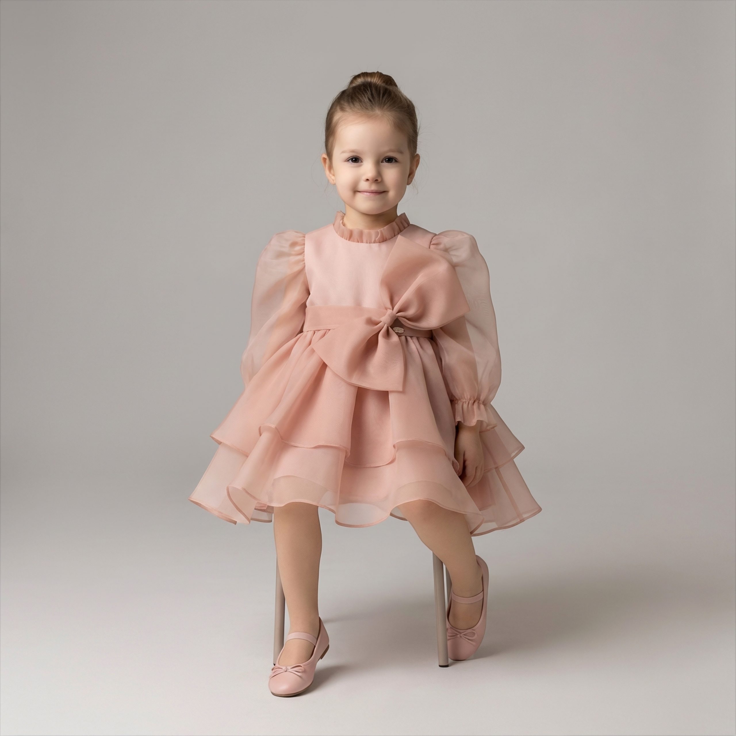 The Mimi Carina dress is a masterpiece of elegance and grace, designed for little girls who love to shine. Featuring voluminous puffed sleeves, cascading layered ruffles, and a statement oversized bow, this dress embodies luxury and sophistication. Crafted from premium-quality fabrics with a delicate sheen, Mimi Carina offers a dreamy and enchanting look for any special occasion. Every detail is hand-sewn with precision, ensuring a flawless finish that makes this dress truly unforgettable.