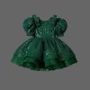 •Ngjyrë e gjelbër smeraldi me shkëlqim në të gjithë fustanin
