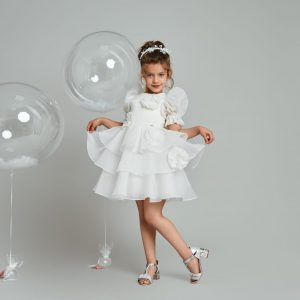 Fustani Mimi Musica është mishërimi i hijeshisë dhe sharmit, krijuar për ta bërë çdo moment të veçantë të paharrueshëm. Ky fustan magjepsës vjen në një nuancë delikate rozë të lehtë, i zbukuruar me detaje vezulluese në pjesën e sipërme për një prekje elegante dhe të sofistikuar. Fustani përmban një fund voluminoz prej tyli, duke krijuar një siluetë plot finesë, ndërsa mëngët me dantella të valëzuara dhe thekë të butë shtojnë një prekje lozonjare dhe magjike. I punuar me materiale të lehta dhe të ajrosshme, ky fustan siguron rehati maksimale ndërkohë që reflekton elegancë, duke e bërë zgjedhjen perfekte për dasma, festa dhe evente formale. Fustani Mimi Musica është një vepër arti e përjetshme që mishëron magjinë e sofistikimit dhe feminitetit.