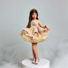 Ndriçoni çdo rast të veçantë me fustanin e artë Mimi Soleil. Ky fustan mahnitës pa mëngë ka një material në ngjyrë ari me detaje delikate që shkëlqejnë, duke e bërë perfekt për ditëlindje, dasma dhe evente festive të ndryshme. Fundi me tyl me shtresa krijon një siluetë elegante si princeshë, ndërsa zbukurimi me lule në pjesën e sipërme shton një prekje të hijshme dhe elegante. I punuar me materiale cilësore, Fustani Mimi Soleil ofron rehati dhe sofistikim, duke e bërë të domosdoshëm për momente të paharrueshme. Lejojeni vajzën tuaj të shkëlqejë si dielli me këtë fustan rrezatues.