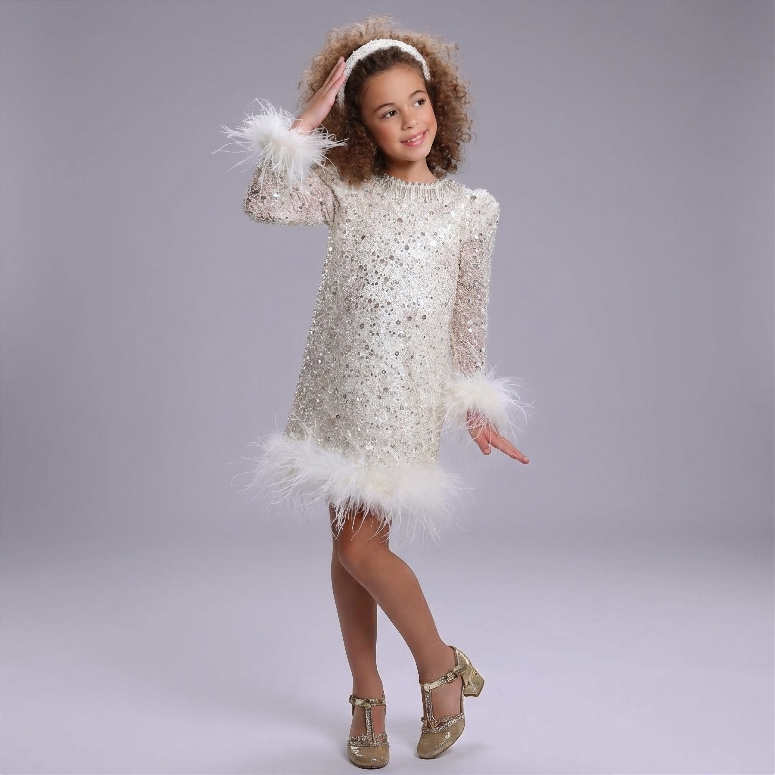 Bring out your little one’s inner star with the Sparkling Elegance Feathered Dress. Shop now and make every moment magical!