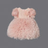 Fustani Mimi Titania është një kombinim mahnitës i shkëlqimit dhe magjisë, krijuar për vajzat e vogla që meritojnë më të mirën. Me një pjesë të sipërme të zbukuruar me xixa, mëngë të fryra dhe një fund voluminoz me shtresa tyli, ky fustan është zgjedhja perfekte për raste të veçanta. Punuar nga materiale luksoze, Mimi Titania ofron një ndjesi të pasur dhe të rehatshme, duke e bërë çdo hap të ndihet magjik. Çdo detaj është qëndisur me dorë me përpikmëri, duke e kthyer këtë fustan në një kryevepër të vërtetë.