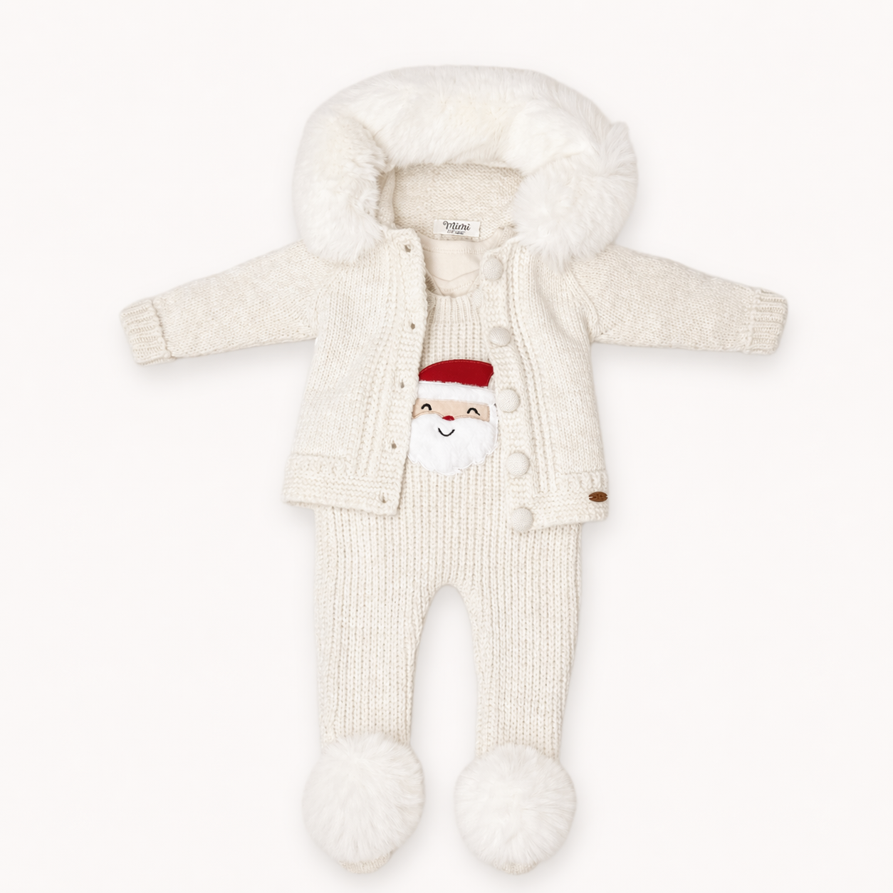 Elevate your baby’s winter wardrobe with this elegant cream knitted set from Mimi Organic. Thoughtfully crafted from soft, breathable materials, this cozy outfit features a beautifully textured romper paired with a matching hooded cardigan adorned with delicate faux fur details.