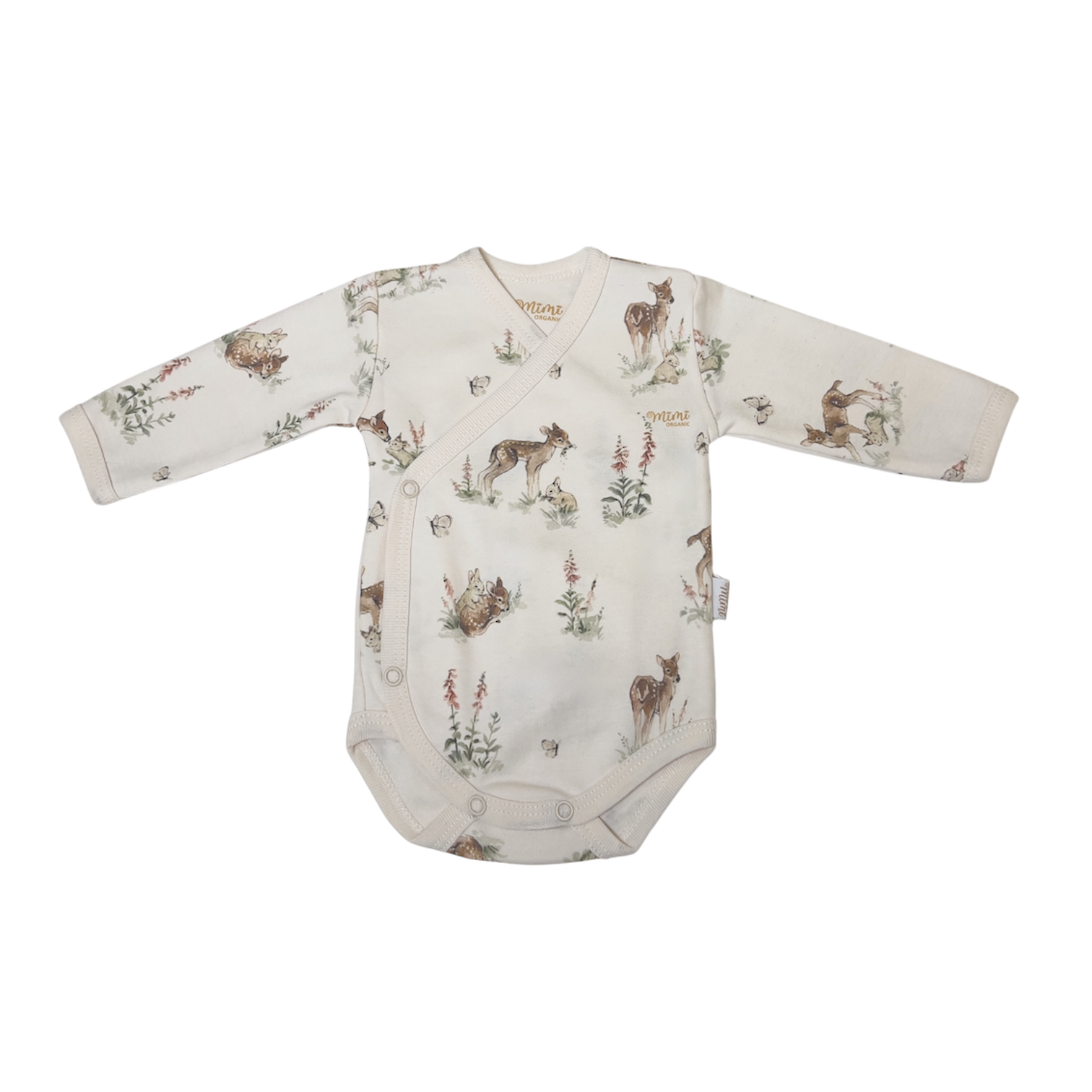 Bring nature’s calm to your baby’s first days with our Woodland Whisper Newborn Set. Made from 100% certified organic cotton, this 3-piece set includes a long-sleeve wrap bodysuit, soft footed pants, and a light muslin blanket in beige. Featuring delicate forest animal prints, it’s gentle on your newborn’s skin and perfect as a baby shower gift or hospital outfit.
